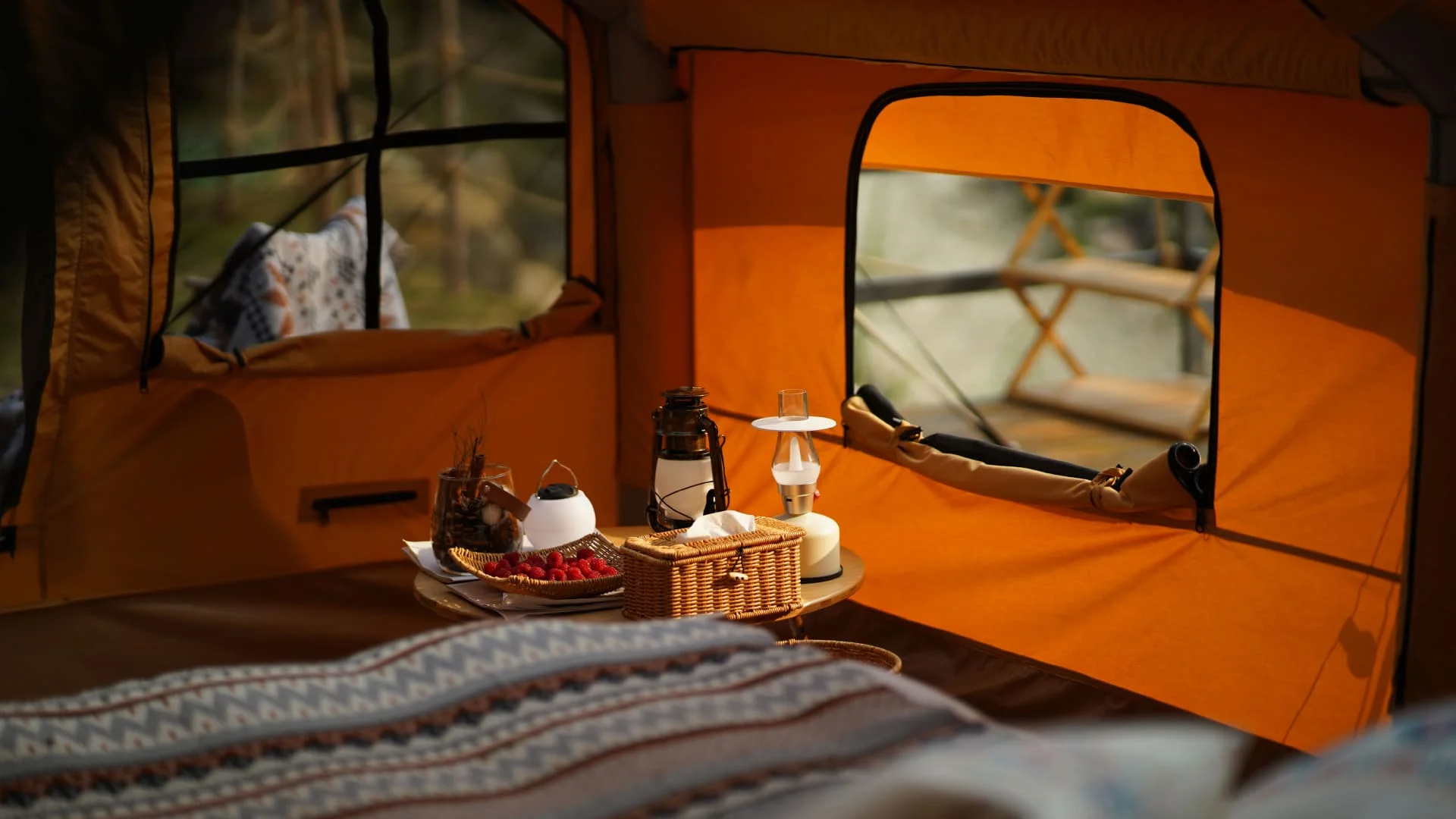 The provided pump allows you to quickly inflate the tent in 5-10 minutes.